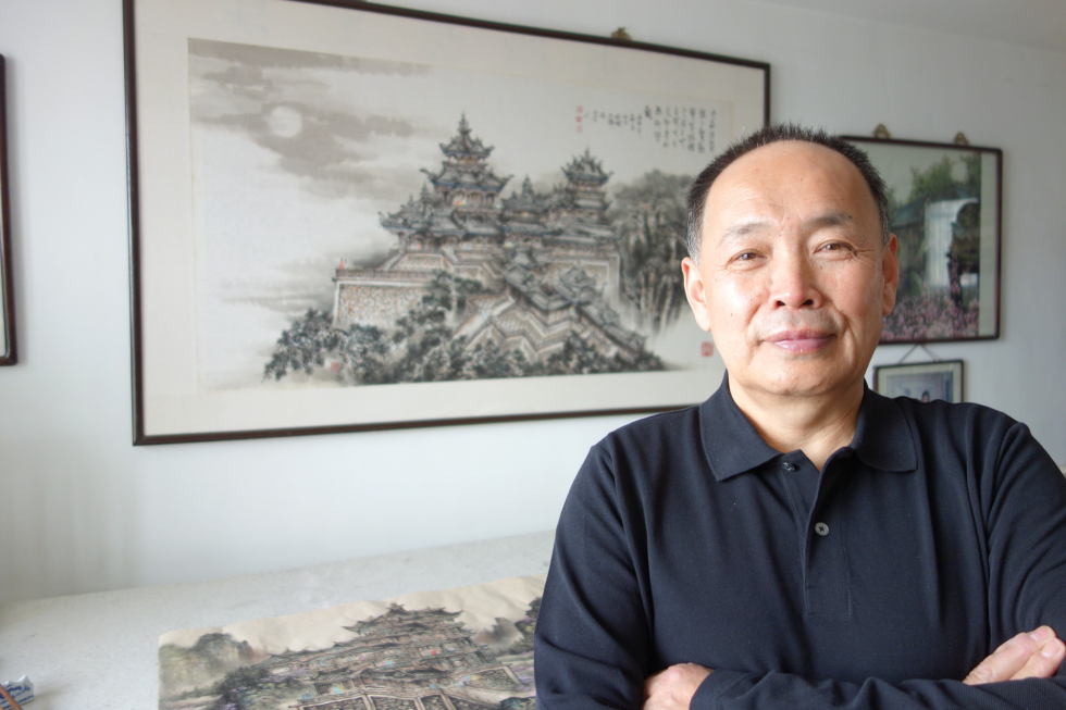 Good at creating royal garden buildings, Great Wall of China, ancient temple courtyards, plum blossoms and cranes, he jointly writes poems, has published books, and creates stamp seals.